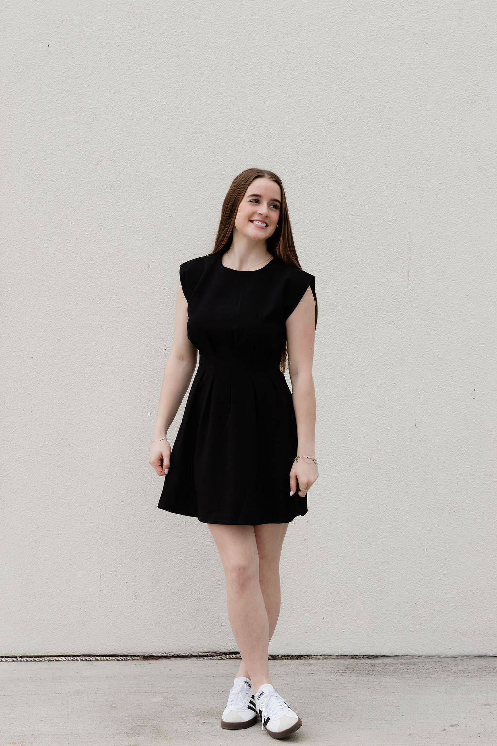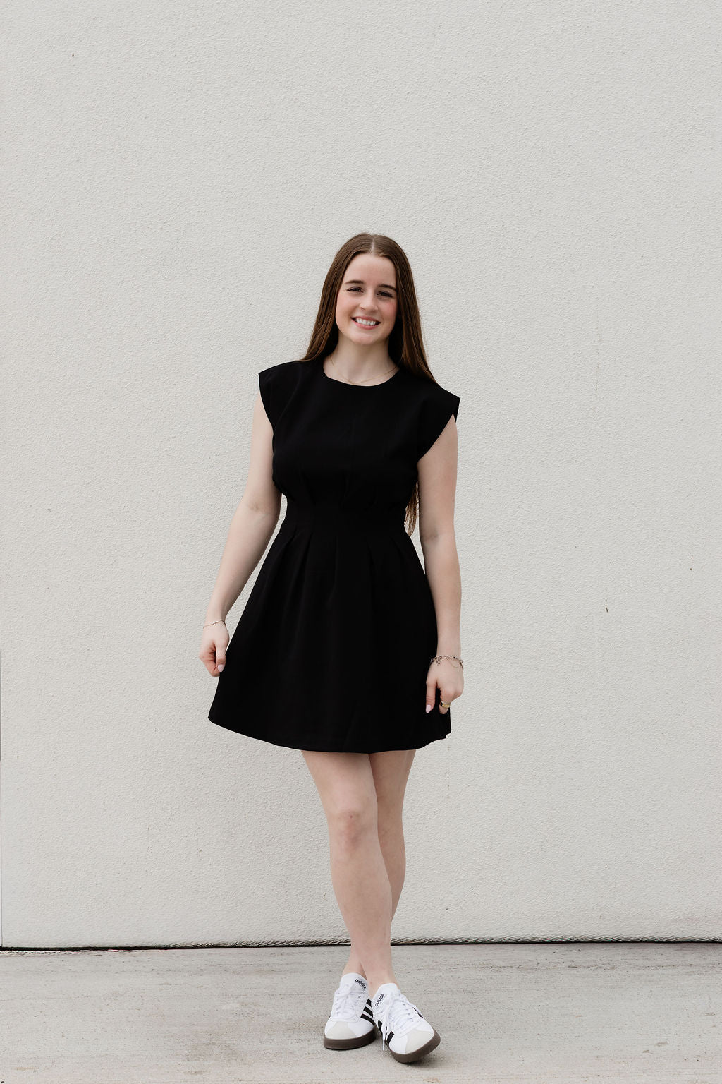 A timeless mini dress with a curvy look and soft flared skirt. The clean lines and subtle shaping create the most flattering silhouette. Simple, feminine, and effortlessly polished. Perfect for showers, graduations, sorority looks, or any other special moment!